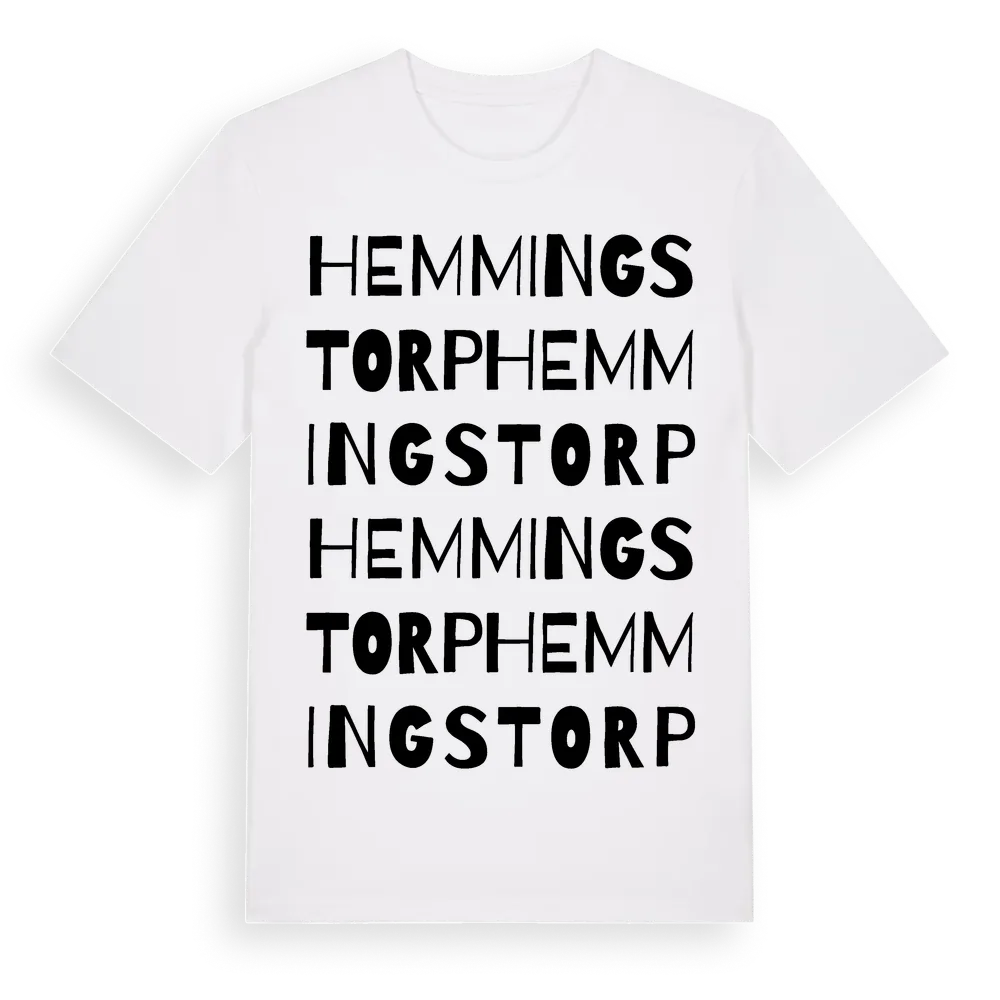 En ordlek byggd på Hemmingstorps namn. Subtilt och klurig – ett motiv som bara de som verkligen känner platsen fullt ut förstår. Premium bomull, unisex – från Hemmingstorp i Södermanlands län.