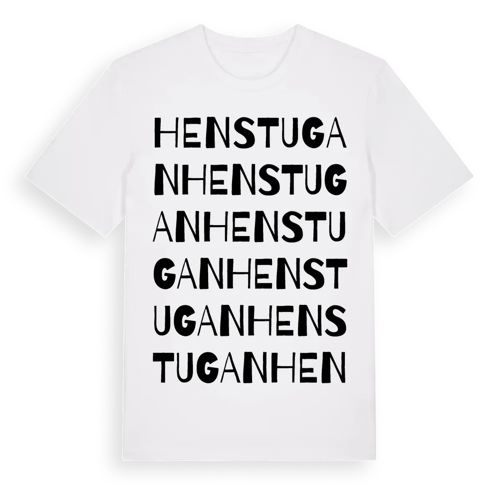 En ordlek byggd på Henstugans namn. Subtilt och klurig – ett motiv som bara de som verkligen känner platsen fullt ut förstår. Premium bomull, unisex – från Henstugan i Södermanlands län.
