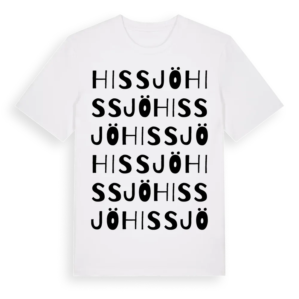 En ordlek byggd på Hissjös namn. Subtilt och klurig – ett motiv som bara de som verkligen känner platsen fullt ut förstår. Premium bomull, unisex – från Hissjö i Södermanlands län.