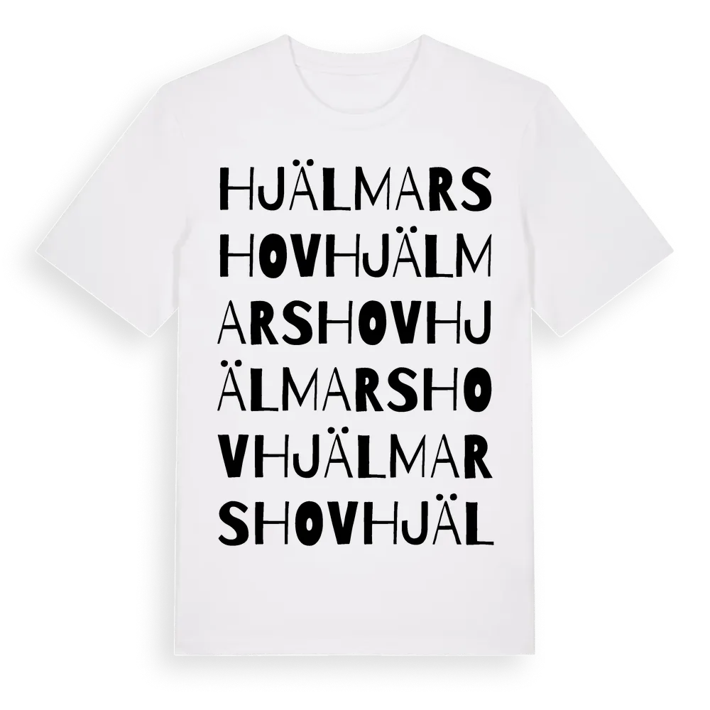Hjälmarshov ordlek t-shirt är inspirerad av Hjälmarshov i Södermanlands län, Sverige. Tröjan är designad för dig som har en speciell koppling till platsen – oavsett om du bor här, har rötterna här eller bara älskar Hjälmarshov.