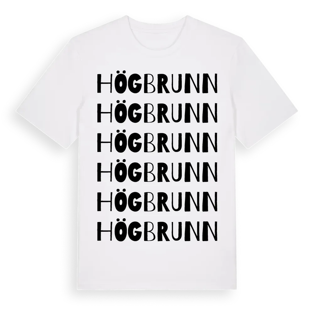 Högbrunn ordlek t-shirt är inspirerad av Högbrunn i Södermanlands län, Sverige. Tröjan är designad för dig som har en speciell koppling till platsen – oavsett om du bor här, har rötterna här eller bara älskar Högbrunn.