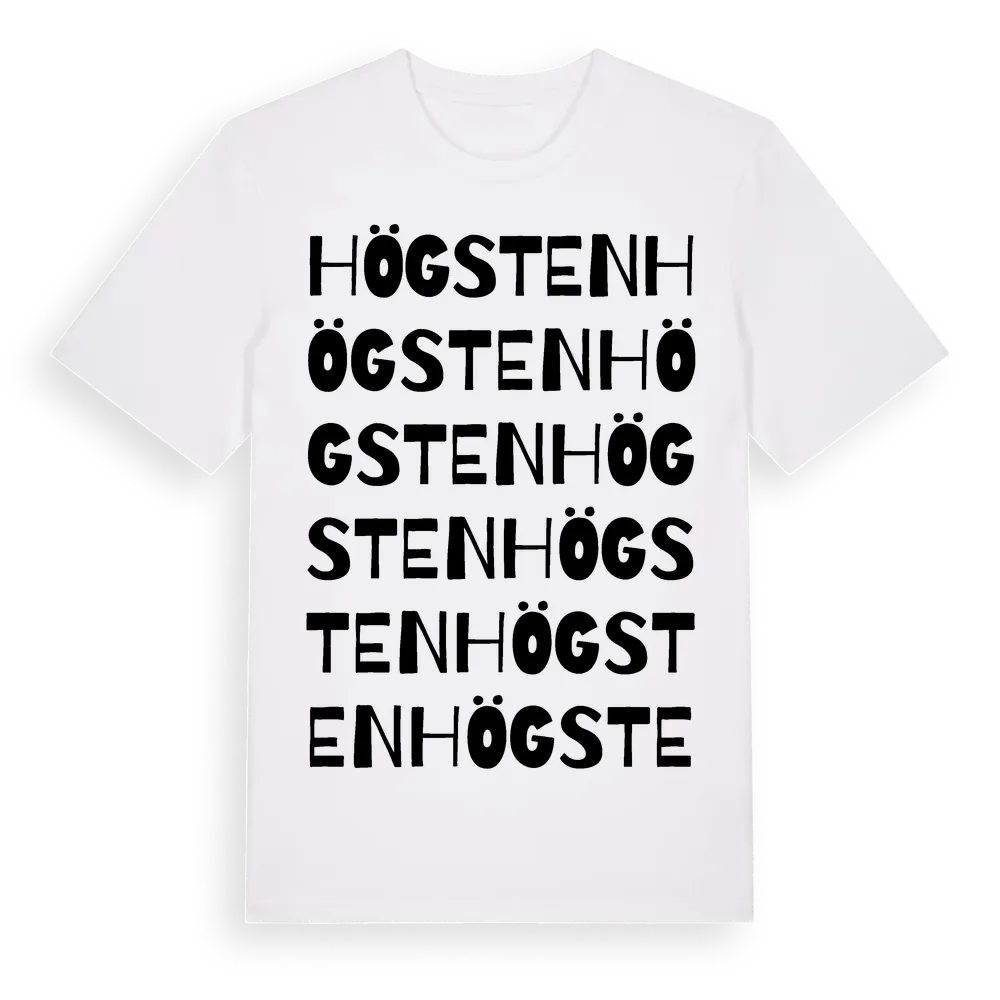 Högsten ordlek t-shirt är inspirerad av Högsten i Södermanlands län, Sverige. Tröjan är designad för dig som har en speciell koppling till platsen – oavsett om du bor här, har rötterna här eller bara älskar Högsten.