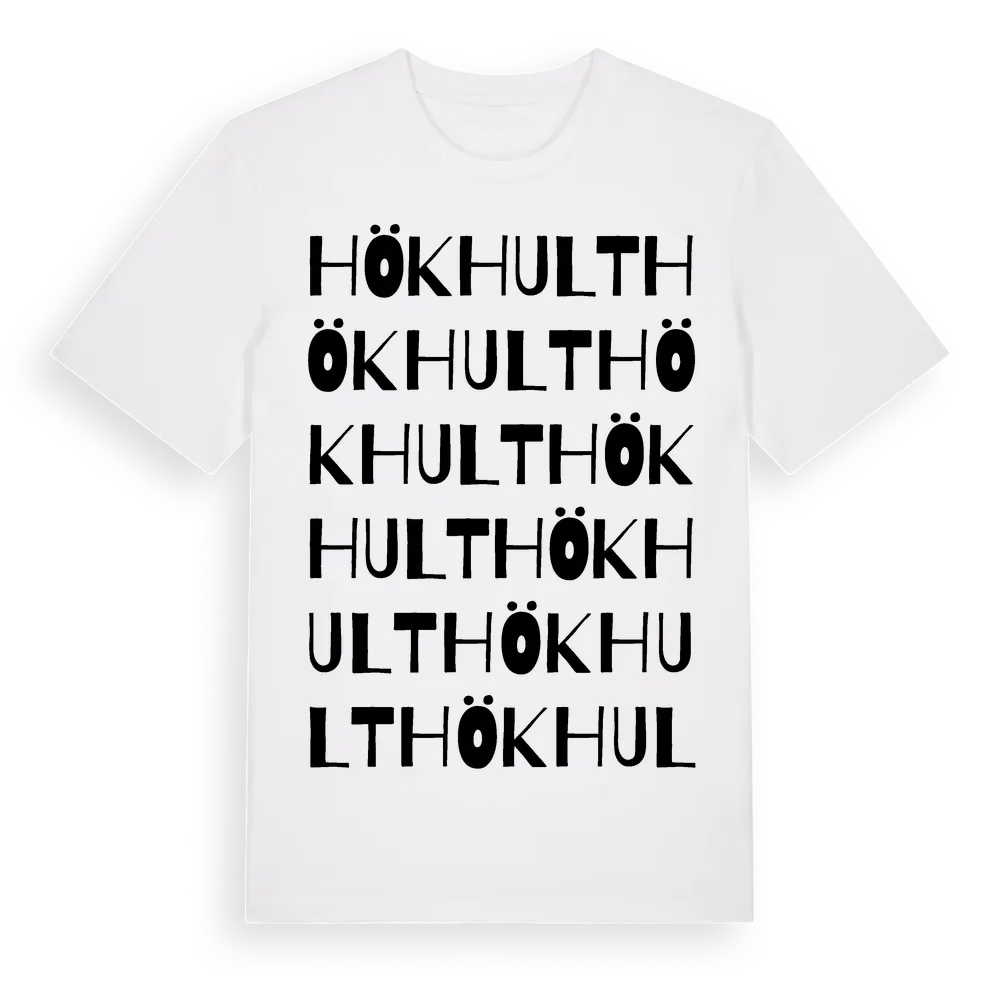 Hökhult ordlek t-shirt är inspirerad av Hökhult i Södermanlands län, Sverige. Tröjan är designad för dig som har en speciell koppling till platsen – oavsett om du bor här, har rötterna här eller bara älskar Hökhult.