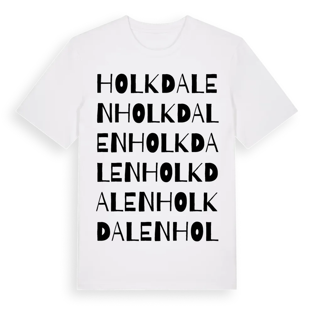 Holkdalen ordlek t-shirt är inspirerad av Holkdalen i Södermanlands län, Sverige. Tröjan är designad för dig som har en speciell koppling till platsen – oavsett om du bor här, har rötterna här eller bara älskar Holkdalen.