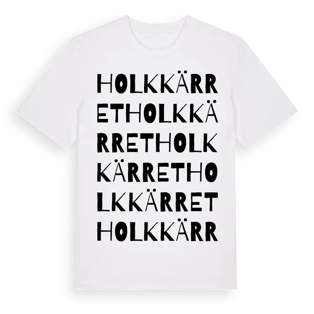 Holkkärret ordlek t-shirt är inspirerad av Holkkärret i Södermanlands län, Sverige. Tröjan är designad för dig som har en speciell koppling till platsen – oavsett om du bor här, har rötterna här eller bara älskar Holkkärret.