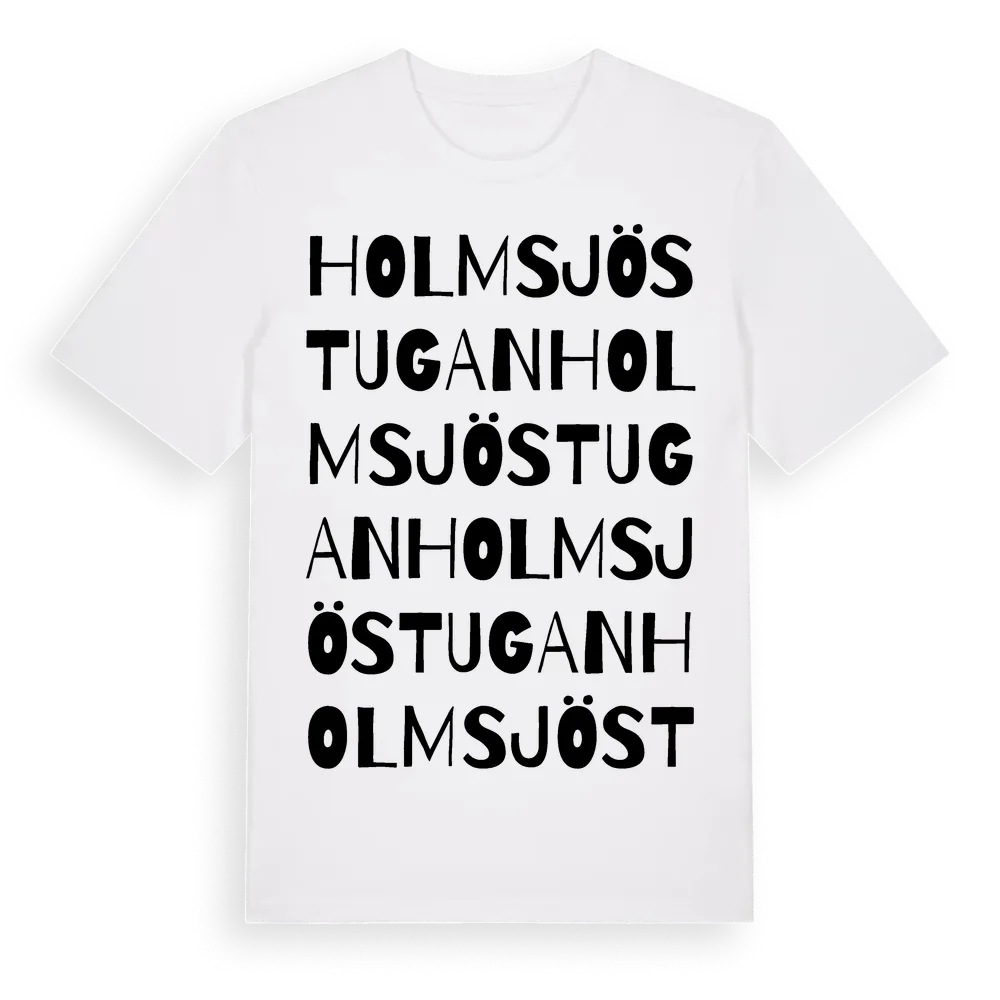 Holmsjöstugan ordlek t-shirt är inspirerad av Holmsjöstugan i Södermanlands län, Sverige. Tröjan är designad för dig som har en speciell koppling till platsen – oavsett om du bor här, har rötterna här eller bara älskar Holmsjöstugan.