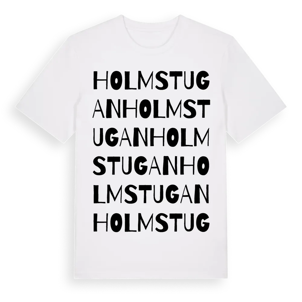 Holmstugan ordlek t-shirt är inspirerad av Holmstugan i Södermanlands län, Sverige. Tröjan är designad för dig som har en speciell koppling till platsen – oavsett om du bor här, har rötterna här eller bara älskar Holmstugan.