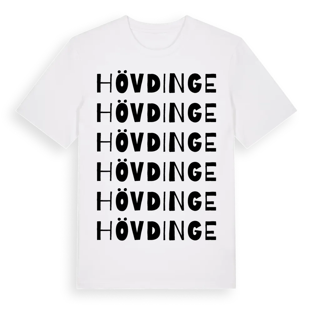 En ordlek byggd på Hövdinges namn. Subtilt och klurig – ett motiv som bara de som verkligen känner platsen fullt ut förstår. Premium bomull, unisex – från byn Hövdinge i Södermanlands län.