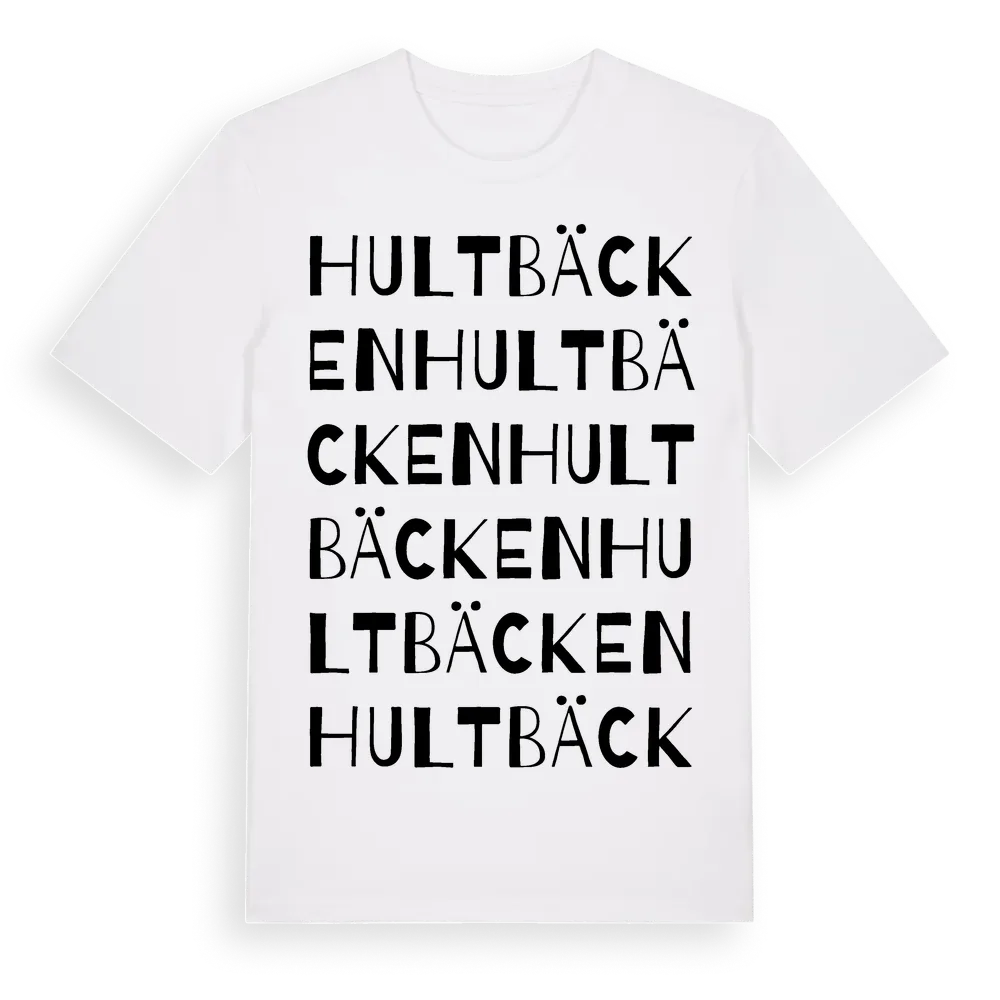 Hultbäcken ordlek t-shirt är inspirerad av Hultbäcken i Södermanlands län, Sverige. Tröjan är designad för dig som har en speciell koppling till platsen – oavsett om du bor här, har rötterna här eller bara älskar Hultbäcken.