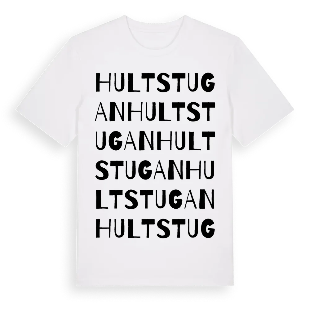 Hultstugan ordlek t-shirt är inspirerad av Hultstugan i Södermanlands län, Sverige. Tröjan är designad för dig som har en speciell koppling till platsen – oavsett om du bor här, har rötterna här eller bara älskar Hultstugan.