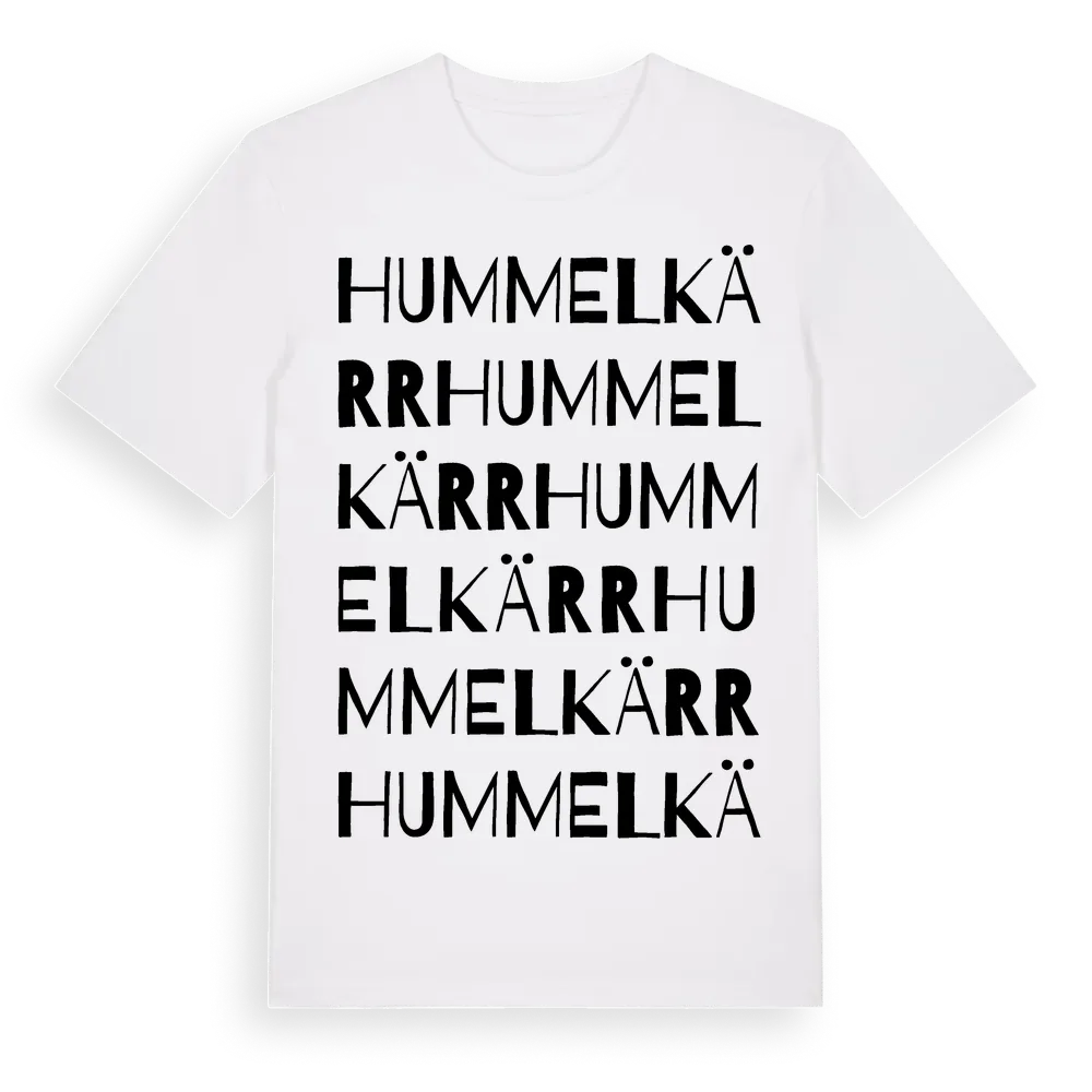Hummelkärr ordlek t-shirt är inspirerad av Hummelkärr i Södermanlands län, Sverige. Tröjan är designad för dig som har en speciell koppling till platsen – oavsett om du bor här, har rötterna här eller bara älskar Hummelkärr.
