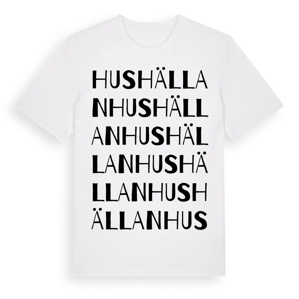 En ordlek byggd på Hushällans namn. Subtilt och klurig – ett motiv som bara de som verkligen känner platsen fullt ut förstår. Premium bomull, unisex – från Hushällan i Södermanlands län.