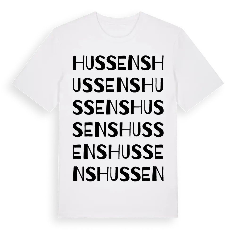 En ordlek byggd på Hussenss namn. Subtilt och klurig – ett motiv som bara de som verkligen känner platsen fullt ut förstår. Premium bomull, unisex – från Hussens i Södermanlands län.