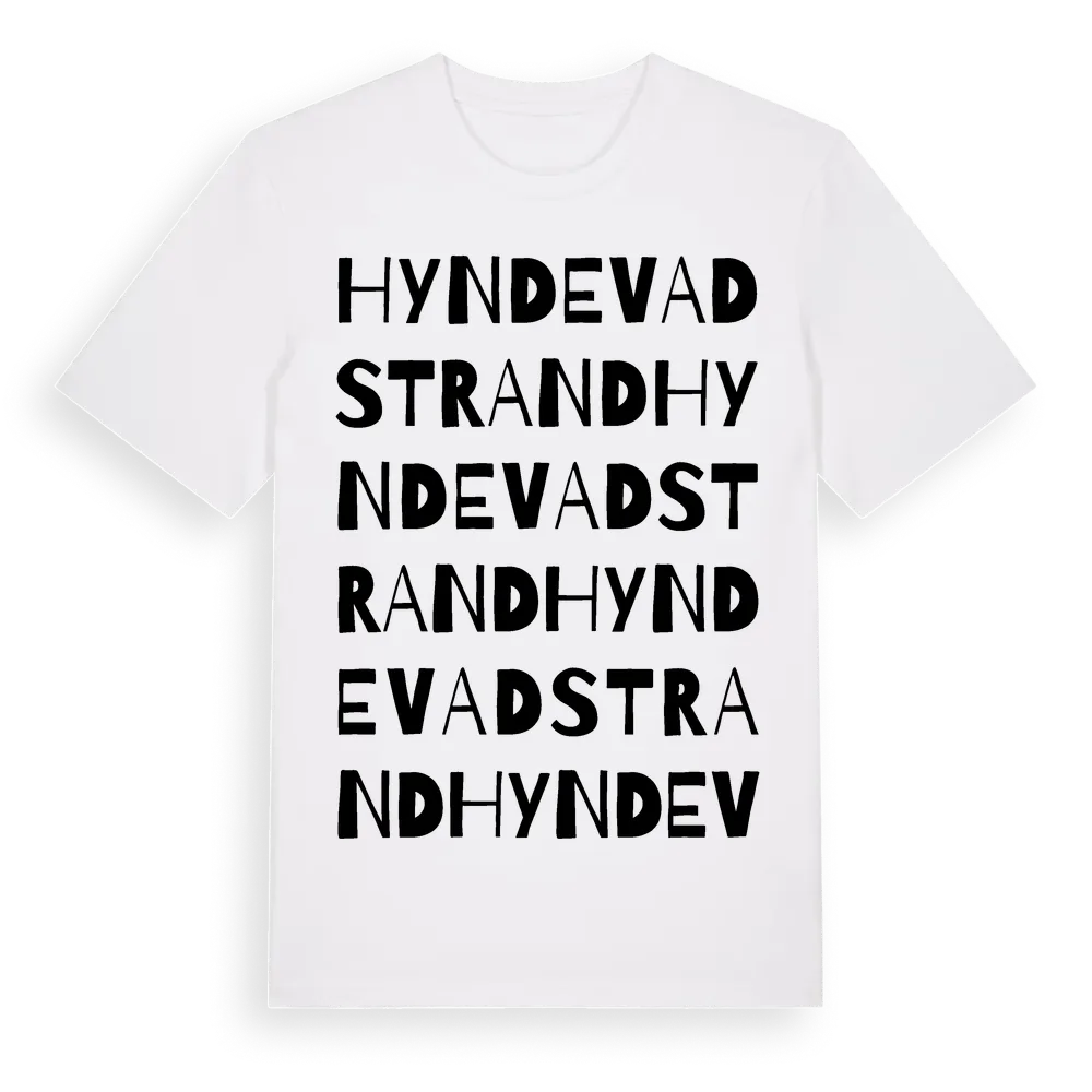 Hyndevadstrand ordlek t-shirt är inspirerad av byn Hyndevadstrand i Södermanlands län, Sverige. Tröjan är designad för dig som har en speciell koppling till platsen – oavsett om du bor här, har rötterna här eller bara älskar Hyndevadstrand.