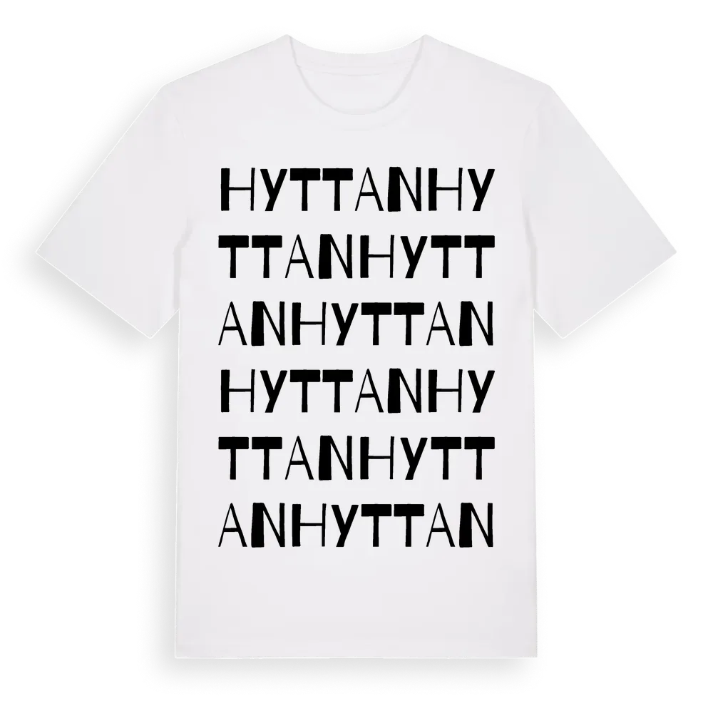 Hyttan ordlek t-shirt är inspirerad av Hyttan i Södermanlands län, Sverige. Tröjan är designad för dig som har en speciell koppling till platsen – oavsett om du bor här, har rötterna här eller bara älskar Hyttan.