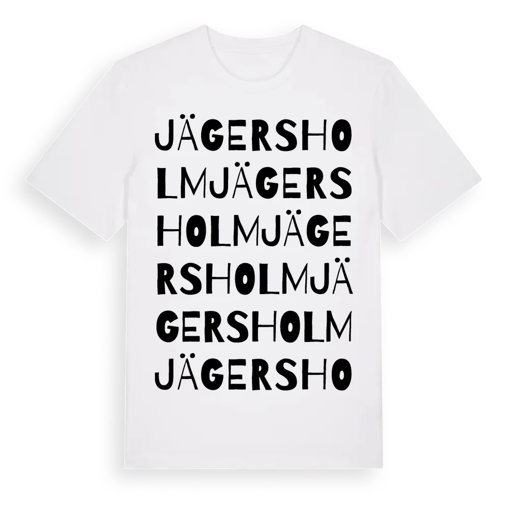 Jägersholm ordlek t-shirt är inspirerad av Jägersholm i Södermanlands län, Sverige. Tröjan är designad för dig som har en speciell koppling till platsen – oavsett om du bor här, har rötterna här eller bara älskar Jägersholm.