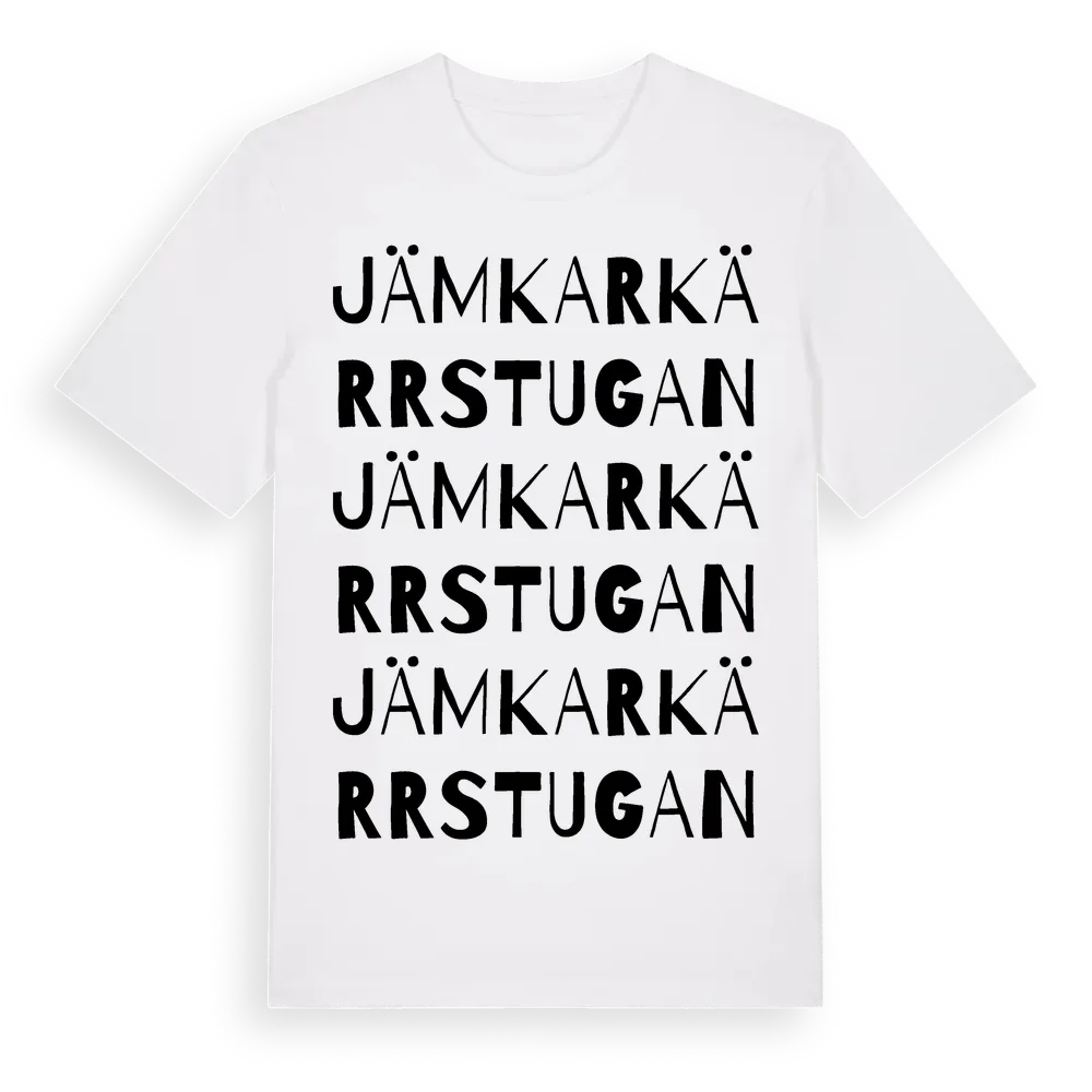 Jämkarkärrstugan ordlek t-shirt är inspirerad av Jämkarkärrstugan i Södermanlands län, Sverige. Tröjan är designad för dig som har en speciell koppling till platsen – oavsett om du bor här, har rötterna här eller bara älskar Jämkarkärrstugan.