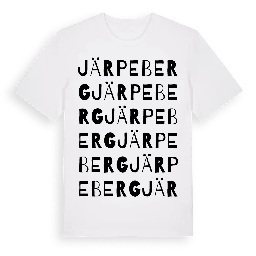Järpeberg ordlek t-shirt är inspirerad av byn Järpeberg i Södermanlands län, Sverige. Tröjan är designad för dig som har en speciell koppling till platsen – oavsett om du bor här, har rötterna här eller bara älskar Järpeberg.