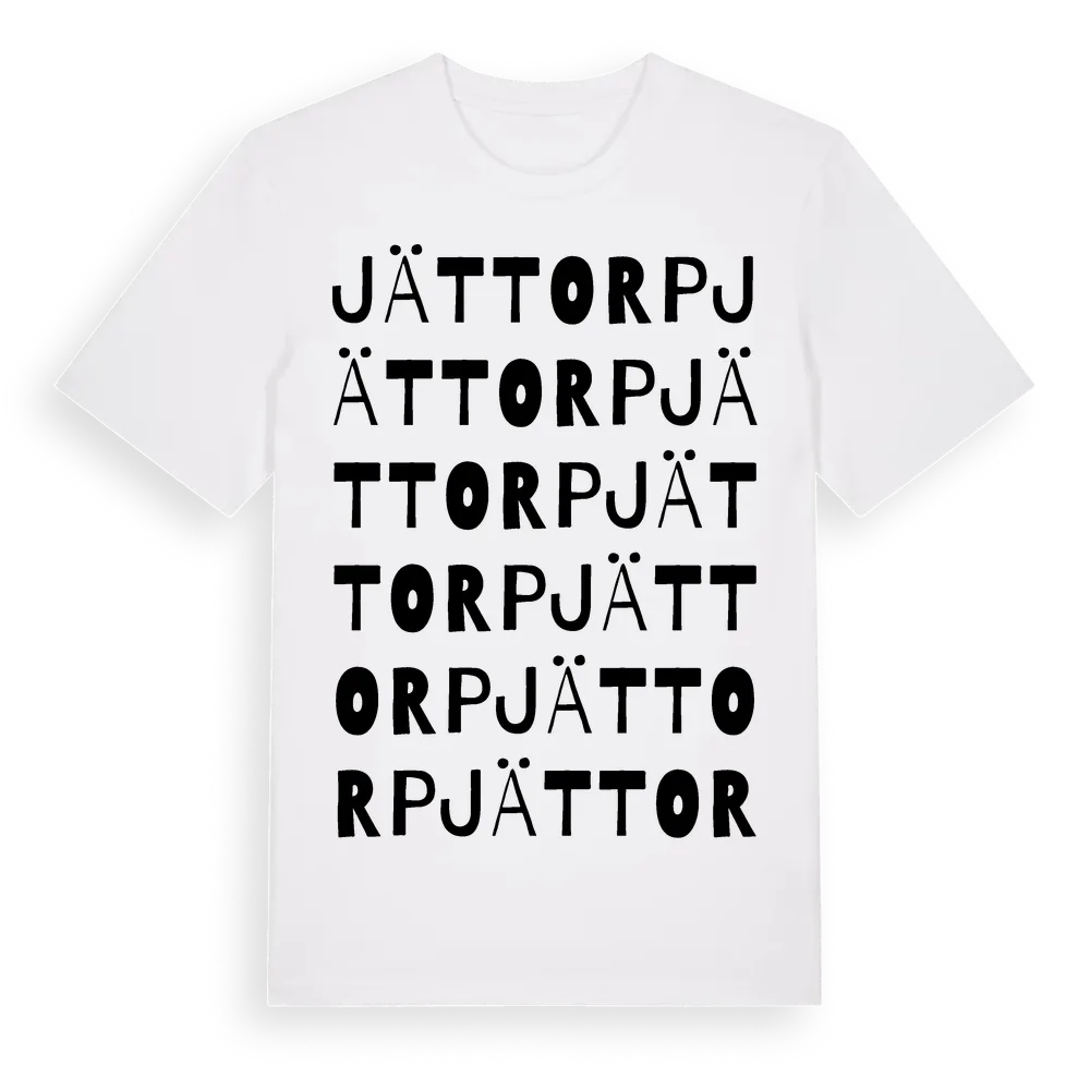 Jättorp ordlek t-shirt är inspirerad av Jättorp i Södermanlands län, Sverige. Tröjan är designad för dig som har en speciell koppling till platsen – oavsett om du bor här, har rötterna här eller bara älskar Jättorp.