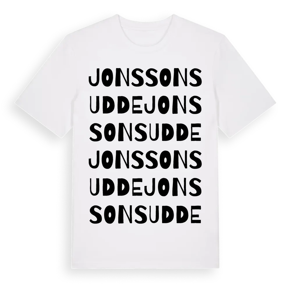 Jonssons Udde ordlek t-shirt är inspirerad av Jonssons Udde i Södermanlands län, Sverige. Tröjan är designad för dig som har en speciell koppling till platsen – oavsett om du bor här, har rötterna här eller bara älskar Jonssons Udde.