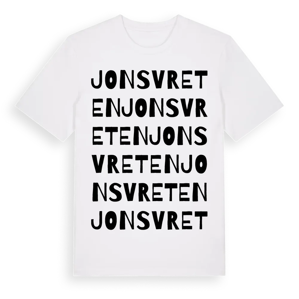 Jonsvreten ordlek t-shirt är inspirerad av Jonsvreten i Södermanlands län, Sverige. Tröjan är designad för dig som har en speciell koppling till platsen – oavsett om du bor här, har rötterna här eller bara älskar Jonsvreten.