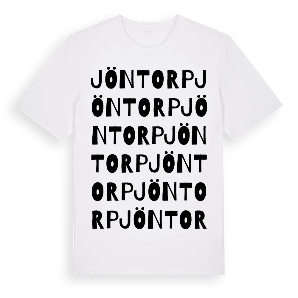 Jöntorp ordlek t-shirt är inspirerad av Jöntorp i Södermanlands län, Sverige. Tröjan är designad för dig som har en speciell koppling till platsen – oavsett om du bor här, har rötterna här eller bara älskar Jöntorp.