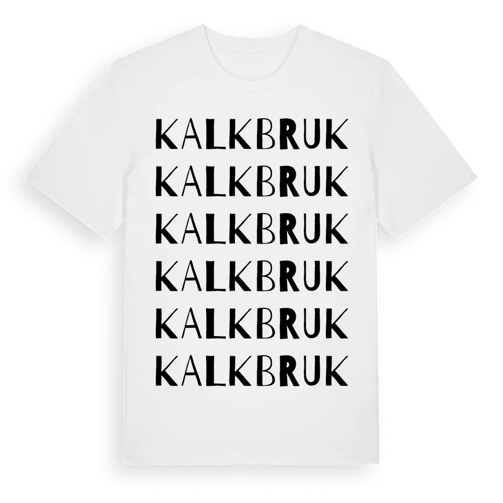 En ordlek byggd på Kalkbruks namn. Subtilt och klurig – ett motiv som bara de som verkligen känner platsen fullt ut förstår. Premium bomull, unisex – från Kalkbruk i Södermanlands län.