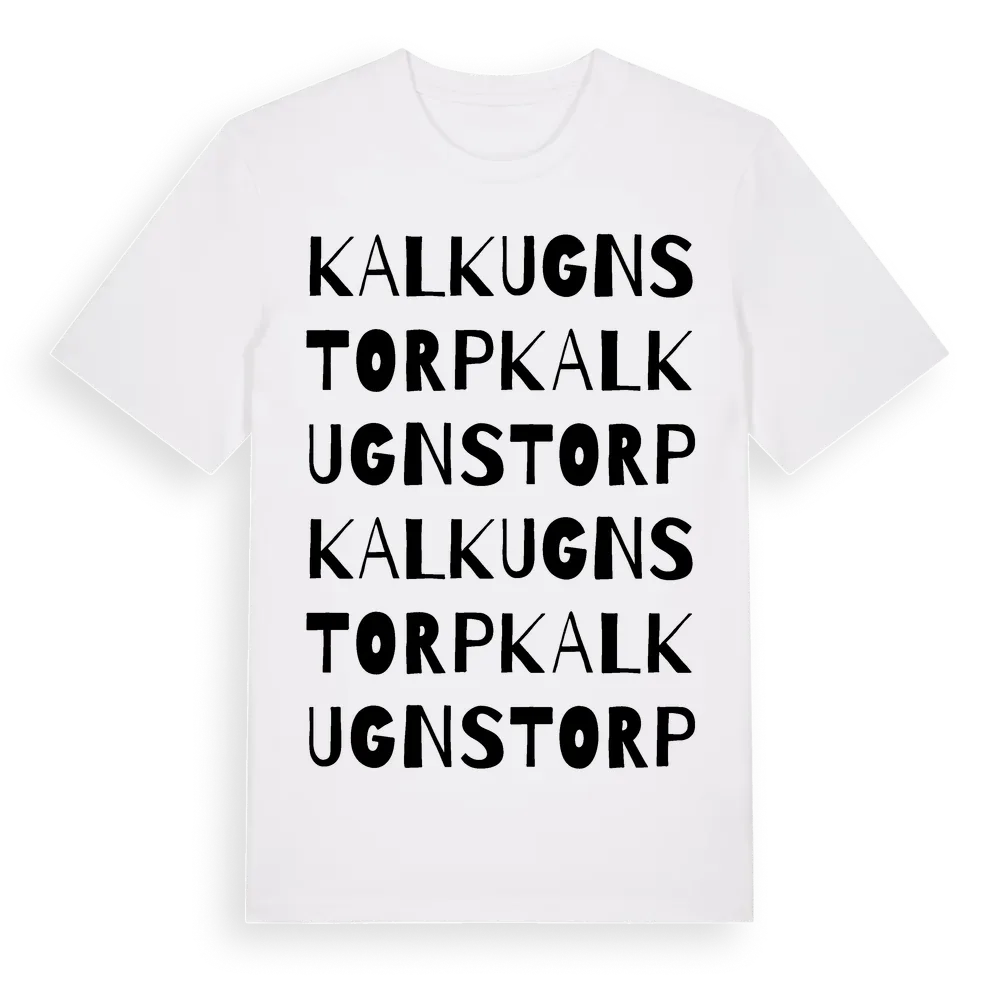 Kalkugnstorp ordlek t-shirt är inspirerad av Kalkugnstorp i Södermanlands län, Sverige. Tröjan är designad för dig som har en speciell koppling till platsen – oavsett om du bor här, har rötterna här eller bara älskar Kalkugnstorp.