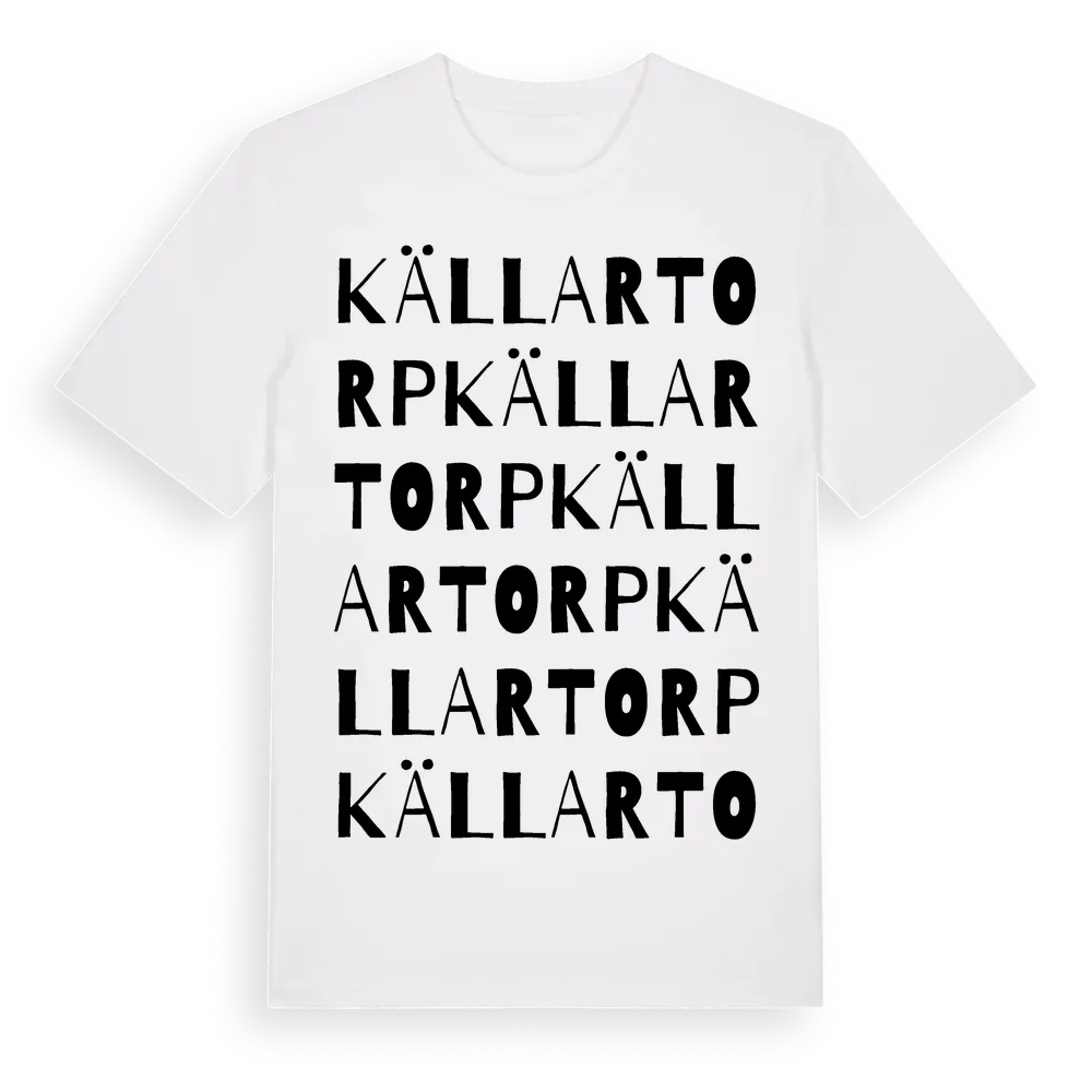 Källartorp ordlek t-shirt är inspirerad av Källartorp i Södermanlands län, Sverige. Tröjan är designad för dig som har en speciell koppling till platsen – oavsett om du bor här, har rötterna här eller bara älskar Källartorp.