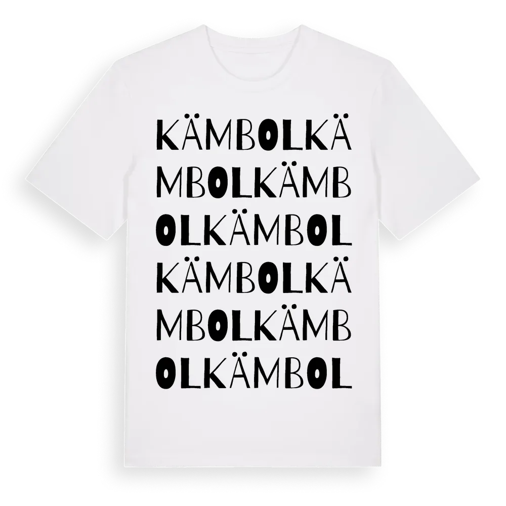 Kämbol ordlek t-shirt är inspirerad av Kämbol i Södermanlands län, Sverige. Tröjan är designad för dig som har en speciell koppling till platsen – oavsett om du bor här, har rötterna här eller bara älskar Kämbol.