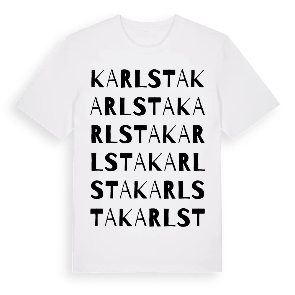 Karlsta ordlek t-shirt är inspirerad av Karlsta i Södermanlands län, Sverige. Tröjan är designad för dig som har en speciell koppling till platsen – oavsett om du bor här, har rötterna här eller bara älskar Karlsta.