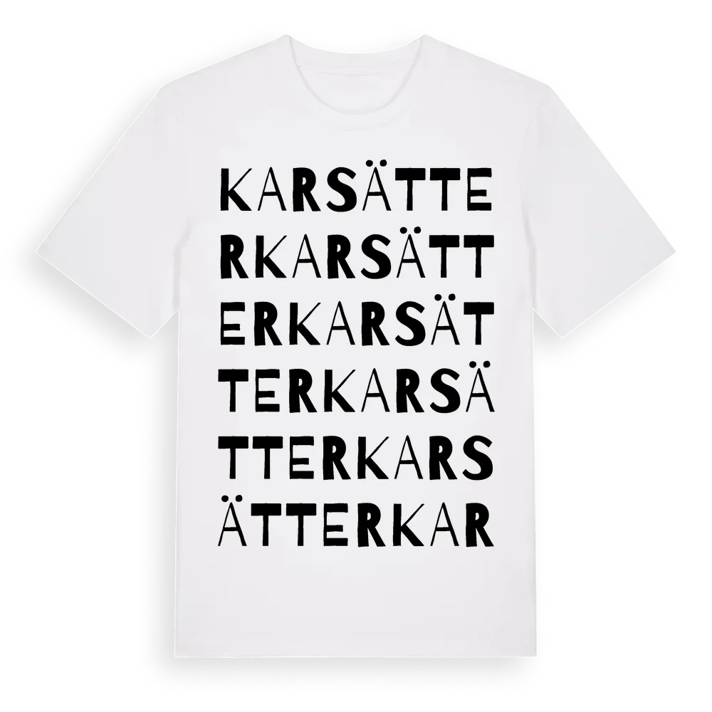 Karsätter ordlek t-shirt är inspirerad av Karsätter i Södermanlands län, Sverige. Tröjan är designad för dig som har en speciell koppling till platsen – oavsett om du bor här, har rötterna här eller bara älskar Karsätter.