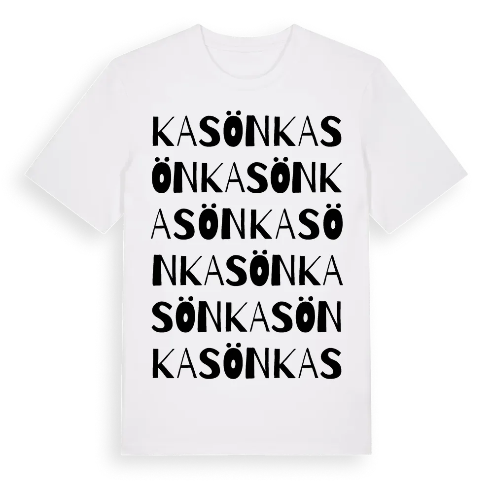 Kasön ordlek t-shirt är inspirerad av Kasön i Södermanlands län, Sverige. Tröjan är designad för dig som har en speciell koppling till platsen – oavsett om du bor här, har rötterna här eller bara älskar Kasön.