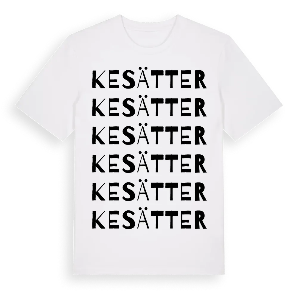 Kesätter ordlek t-shirt är inspirerad av Kesätter i Södermanlands län, Sverige. Tröjan är designad för dig som har en speciell koppling till platsen – oavsett om du bor här, har rötterna här eller bara älskar Kesätter.