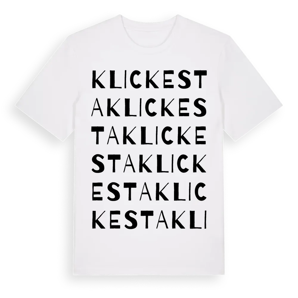 Klickesta ordlek t-shirt är inspirerad av Klickesta i Södermanlands län, Sverige. Tröjan är designad för dig som har en speciell koppling till platsen – oavsett om du bor här, har rötterna här eller bara älskar Klickesta.