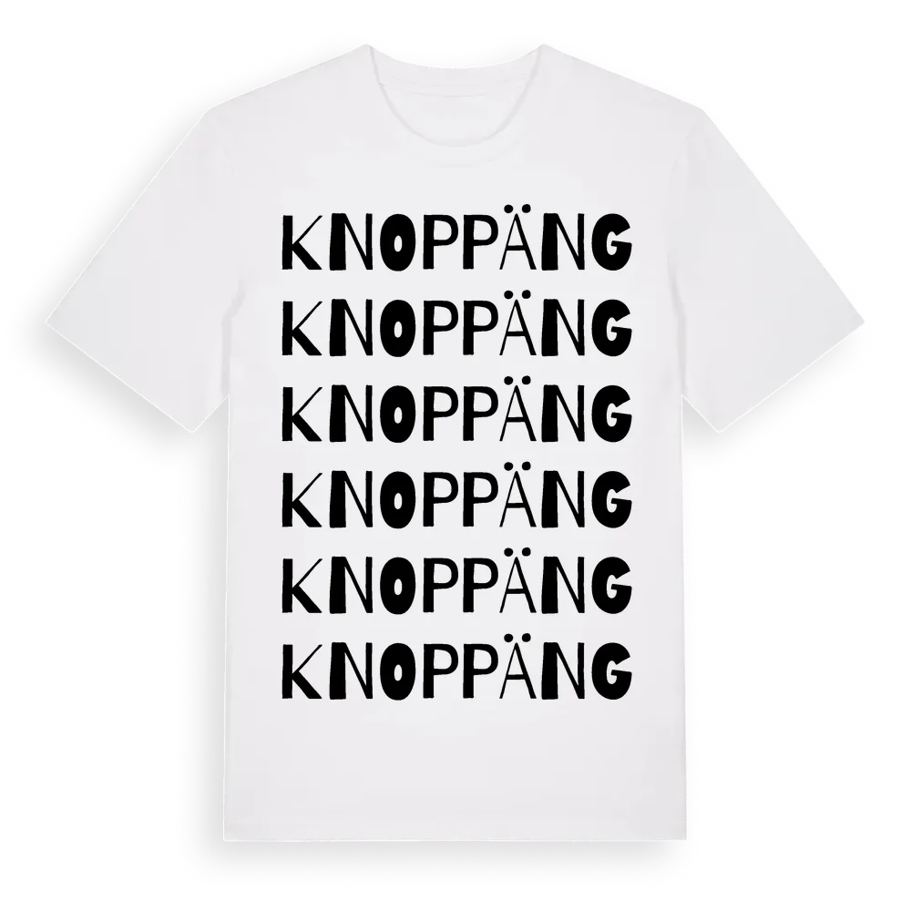 Knoppäng ordlek t-shirt är inspirerad av Knoppäng i Södermanlands län, Sverige. Tröjan är designad för dig som har en speciell koppling till platsen – oavsett om du bor här, har rötterna här eller bara älskar Knoppäng.