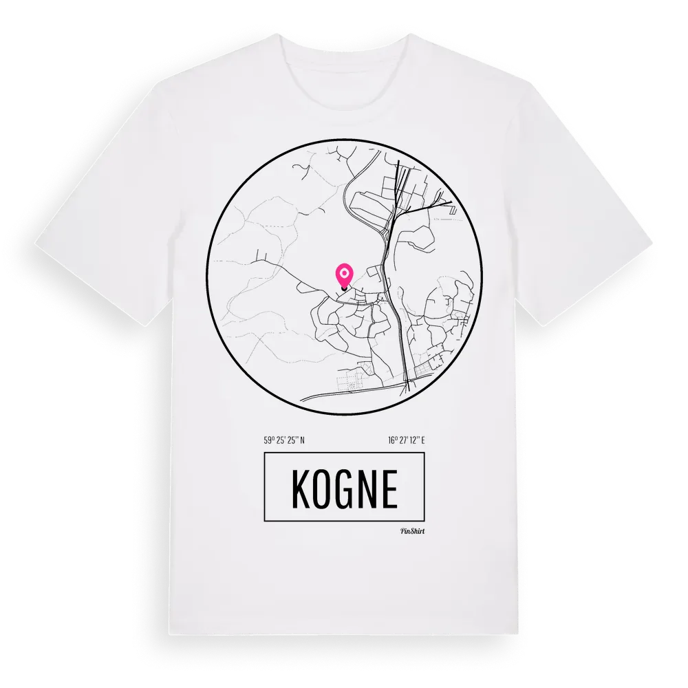 Kogne t-shirt är inspirerad av stadsdelen Kogne i Södermanlands län, Sverige. Tröjan är designad för dig som har en speciell koppling till platsen – oavsett om du bor här, har rötterna här eller bara älskar Kogne.