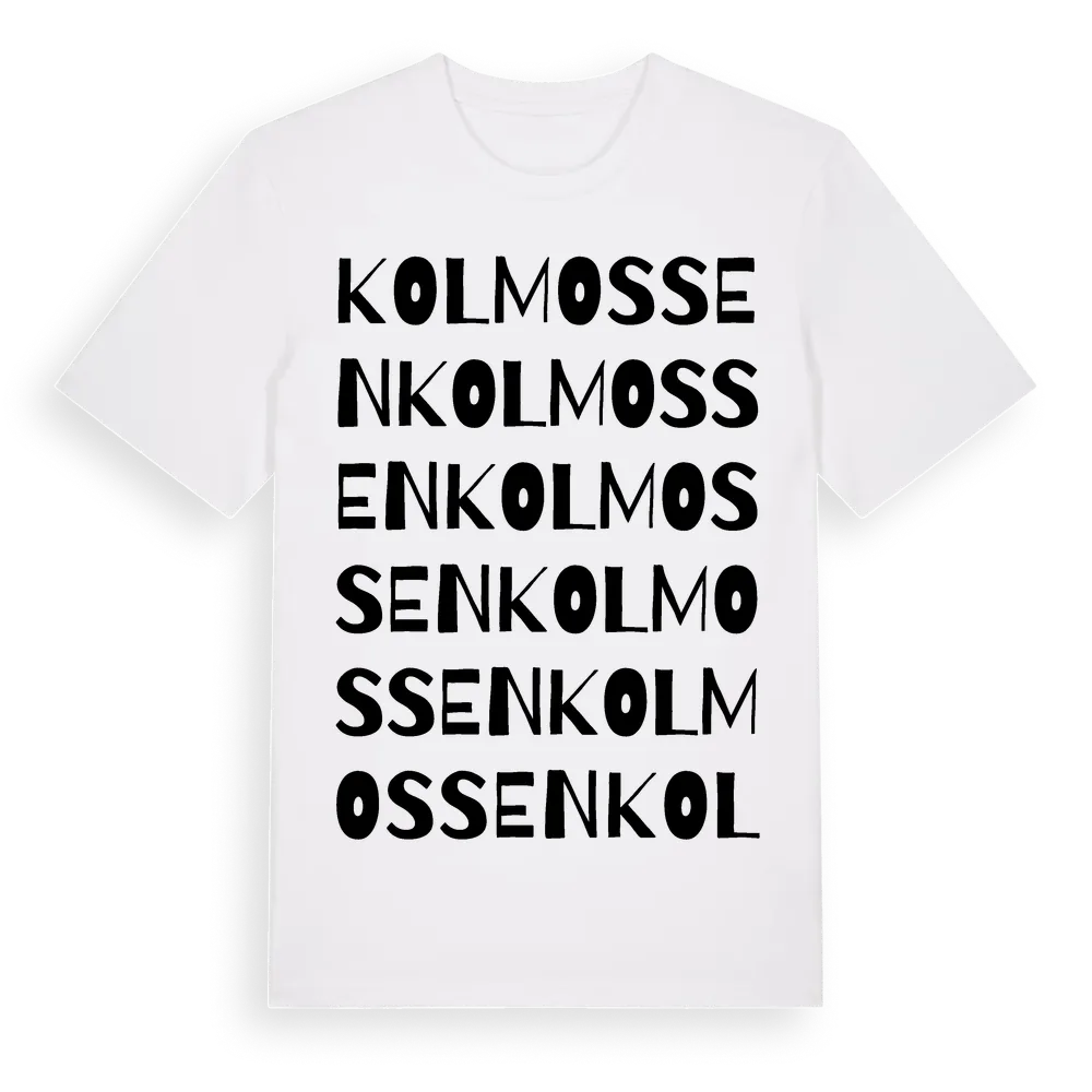 Kolmossen ordlek t-shirt är inspirerad av Kolmossen i Södermanlands län, Sverige. Tröjan är designad för dig som har en speciell koppling till platsen – oavsett om du bor här, har rötterna här eller bara älskar Kolmossen.