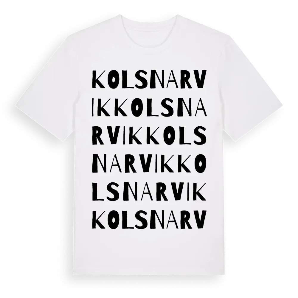 Kolsnarvik ordlek t-shirt är inspirerad av Kolsnarvik i Södermanlands län, Sverige. Tröjan är designad för dig som har en speciell koppling till platsen – oavsett om du bor här, har rötterna här eller bara älskar Kolsnarvik.