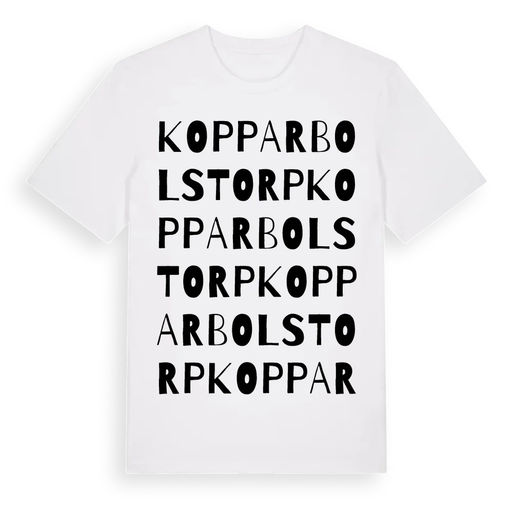 Kopparbolstorp ordlek t-shirt är inspirerad av Kopparbolstorp i Södermanlands län, Sverige. Tröjan är designad för dig som har en speciell koppling till platsen – oavsett om du bor här, har rötterna här eller bara älskar Kopparbolstorp.