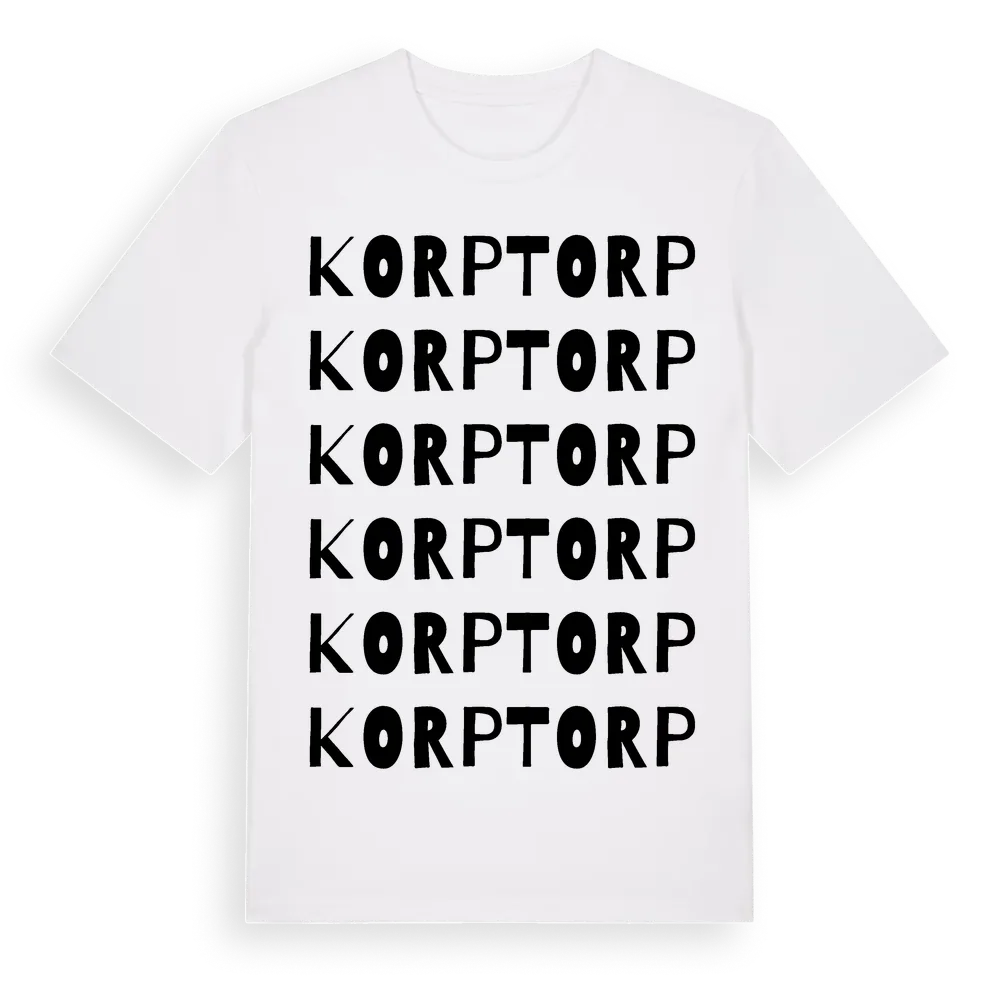 Korptorp ordlek t-shirt är inspirerad av Korptorp i Södermanlands län, Sverige. Tröjan är designad för dig som har en speciell koppling till platsen – oavsett om du bor här, har rötterna här eller bara älskar Korptorp.