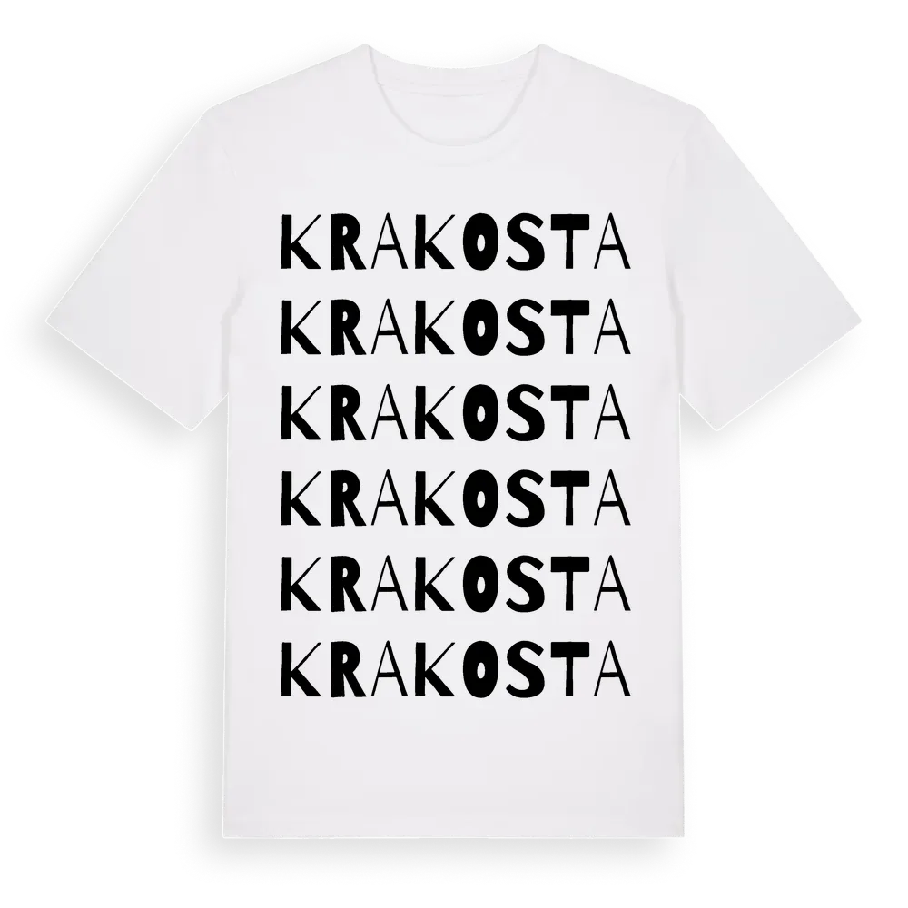 En ordlek byggd på Krakostas namn. Subtilt och klurig – ett motiv som bara de som verkligen känner platsen fullt ut förstår. Premium bomull, unisex – från byn Krakosta i Södermanlands län.