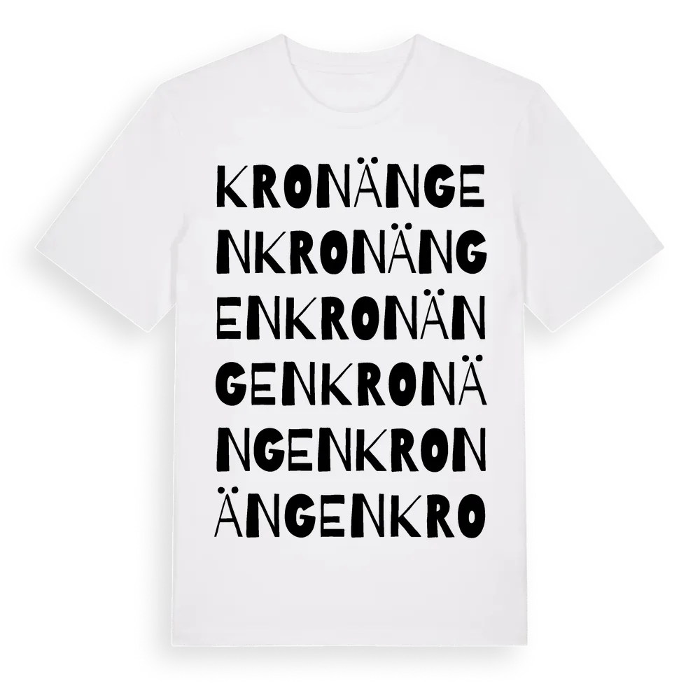Kronängen ordlek t-shirt är inspirerad av Kronängen i Södermanlands län, Sverige. Tröjan är designad för dig som har en speciell koppling till platsen – oavsett om du bor här, har rötterna här eller bara älskar Kronängen.