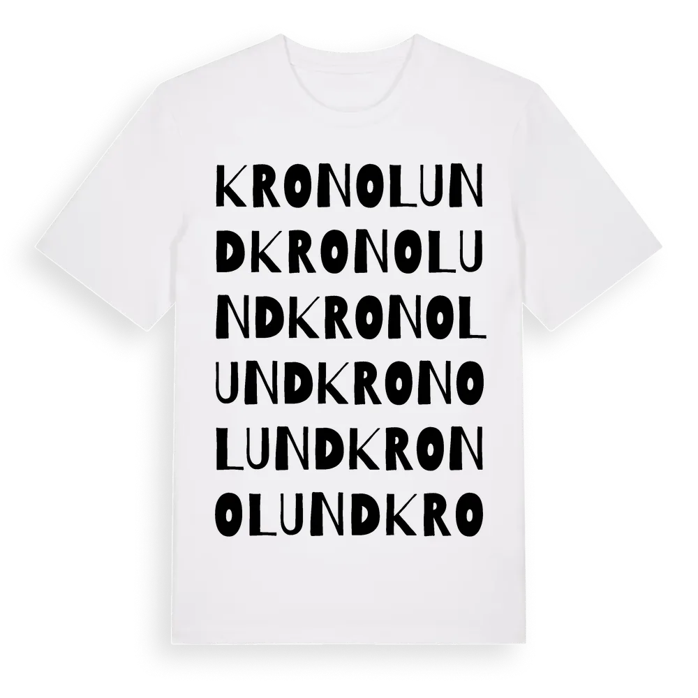 Kronolund ordlek t-shirt är inspirerad av Kronolund i Södermanlands län, Sverige. Tröjan är designad för dig som har en speciell koppling till platsen – oavsett om du bor här, har rötterna här eller bara älskar Kronolund.