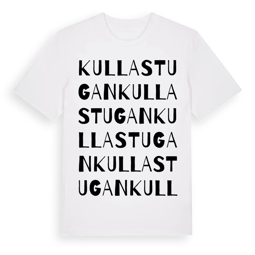 Kullastugan ordlek t-shirt är inspirerad av Kullastugan i Södermanlands län, Sverige. Tröjan är designad för dig som har en speciell koppling till platsen – oavsett om du bor här, har rötterna här eller bara älskar Kullastugan.