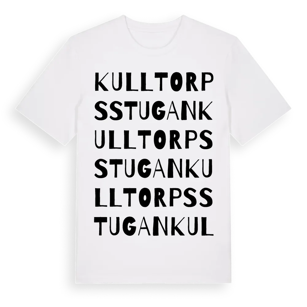 Kulltorpsstugan ordlek t-shirt är inspirerad av Kulltorpsstugan i Södermanlands län, Sverige. Tröjan är designad för dig som har en speciell koppling till platsen – oavsett om du bor här, har rötterna här eller bara älskar Kulltorpsstugan.