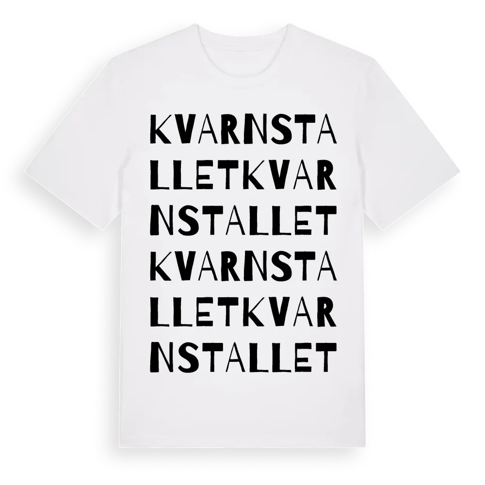 Kvarnstallet ordlek t-shirt är inspirerad av Kvarnstallet i Södermanlands län, Sverige. Tröjan är designad för dig som har en speciell koppling till platsen – oavsett om du bor här, har rötterna här eller bara älskar Kvarnstallet.