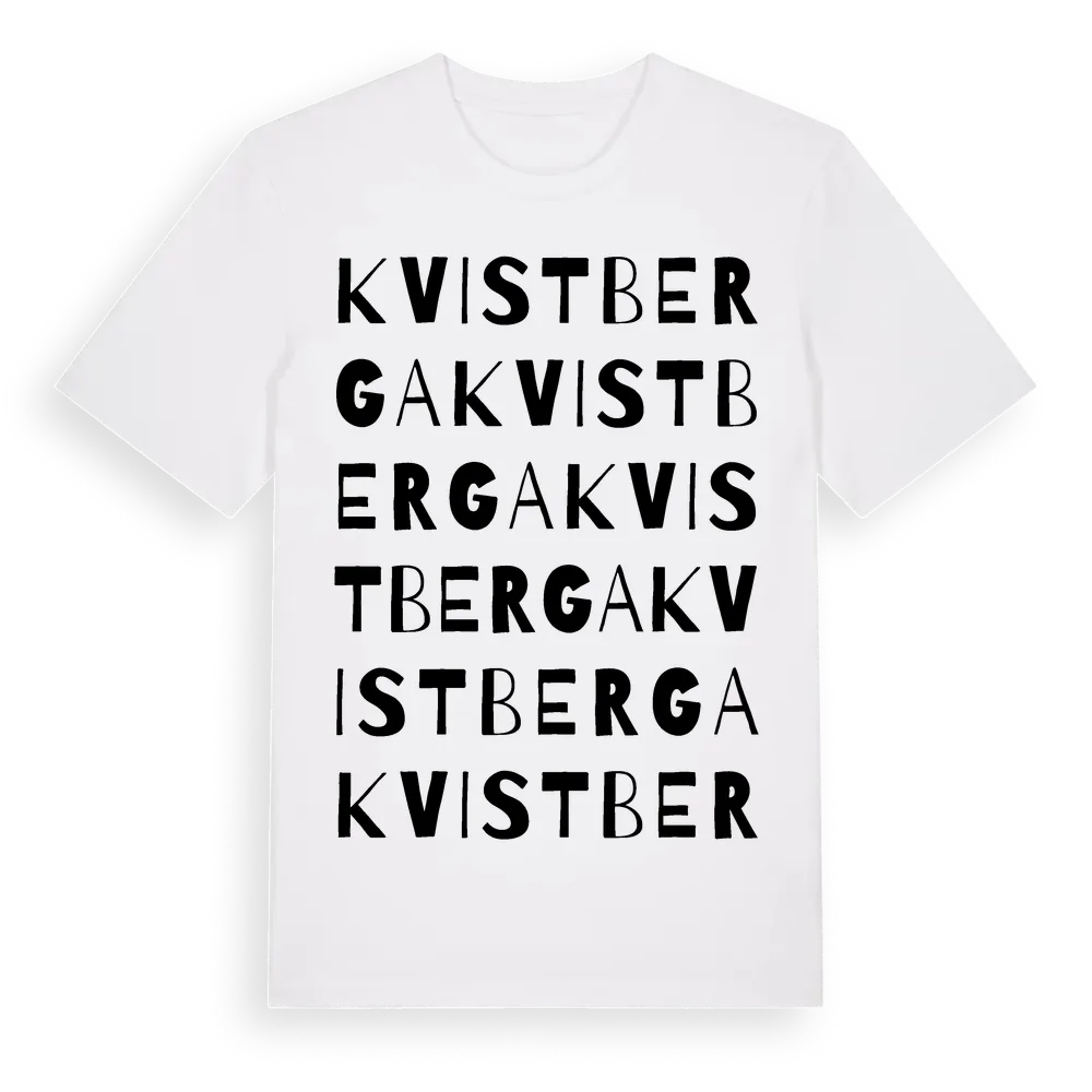 Kvistberga ordlek t-shirt är inspirerad av Kvistberga i Södermanlands län, Sverige. Tröjan är designad för dig som har en speciell koppling till platsen – oavsett om du bor här, har rötterna här eller bara älskar Kvistberga.