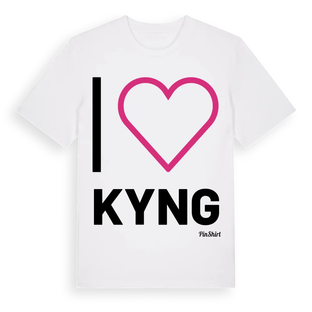 Det klassiska "I ❤ Kyng"-motivet i stort format som täcker hela bröstet. För dig som vill visa kärleken till Kyng på riktigt. Premium bomull, unisex – från byn Kyng i Södermanlands län.