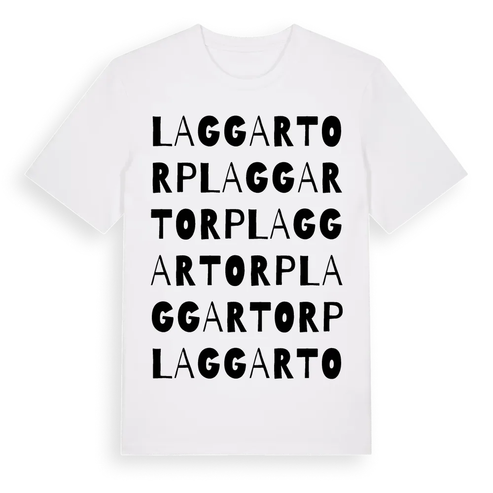 Laggartorp ordlek t-shirt är inspirerad av Laggartorp i Södermanlands län, Sverige. Tröjan är designad för dig som har en speciell koppling till platsen – oavsett om du bor här, har rötterna här eller bara älskar Laggartorp.